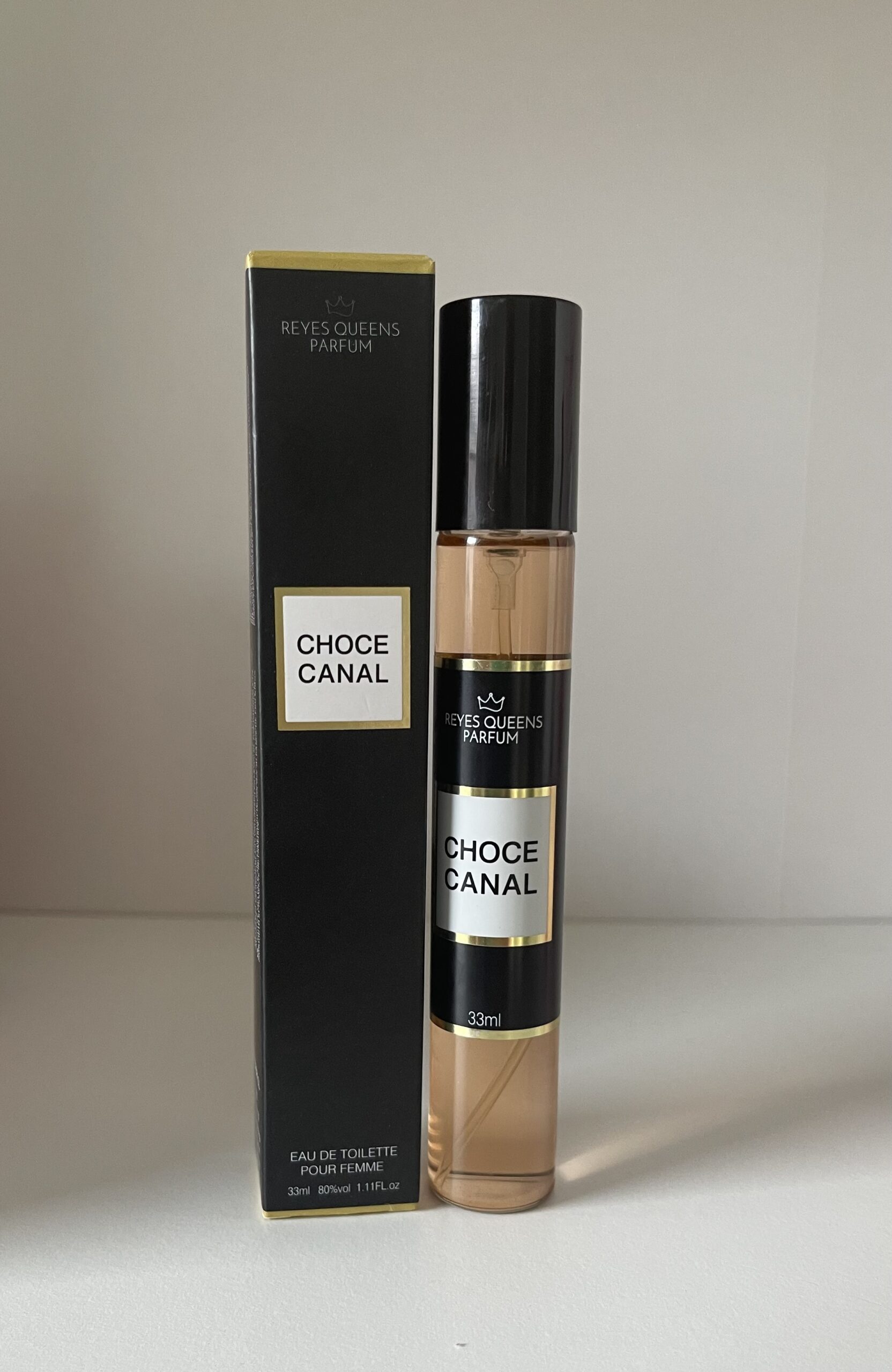 Perfume con notas afrutadas, jazmín y rosas. Inspirado en Coco Chanel.