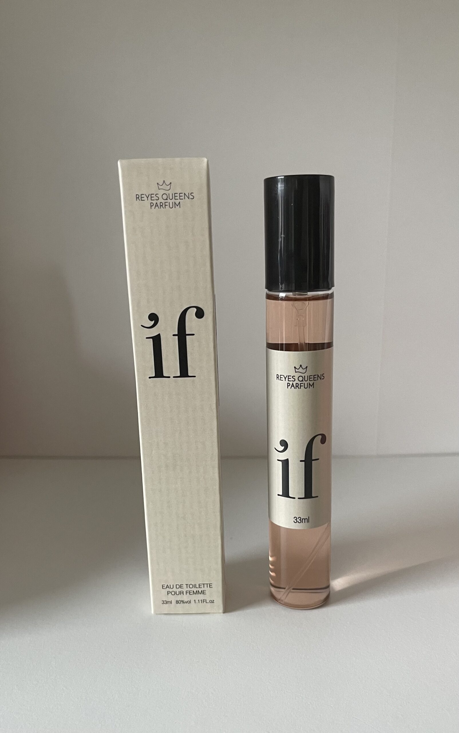 Perfume con notas de menta, rosas y vainilla.